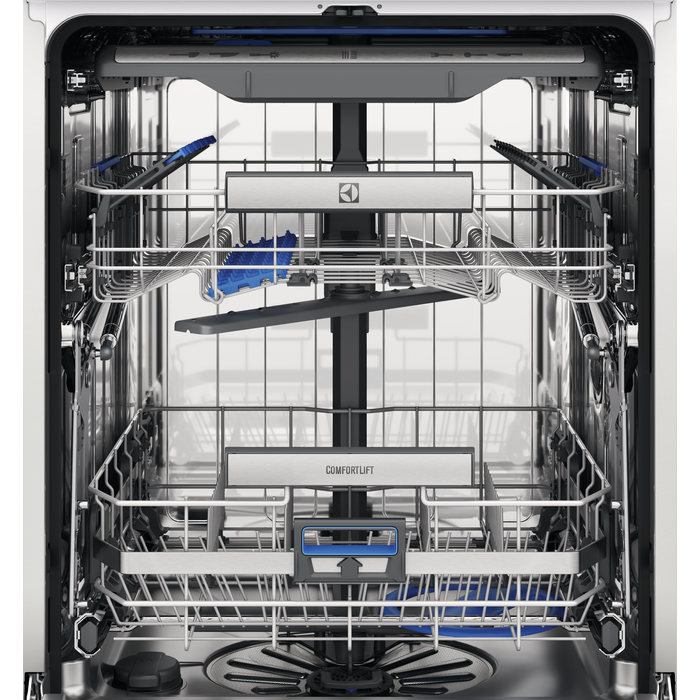 Model ten gwarantuje także komfort użytkowania dzięki regulowanemu górnemu koszowi, opcji FlexiLift, stalowym uchwytom, funkcji Comfort Lift® oraz zaawansowanemu systemowi zabezpieczającemu przed zalaniem. To nowoczesne urządzenie, łączące innowacyjność z praktycznością, idealne do nowoczesnych kuchni.