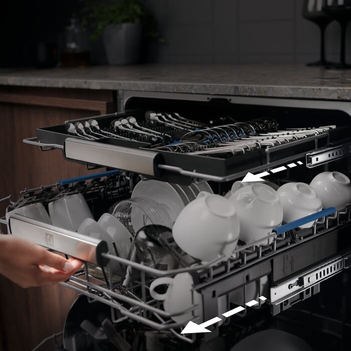 Ten innowacyjny produkt, pochodzący od renomowanej firmy Electrolux, to zintegrowana zmywarka, która oferuje 8 programów i 4 temperatury. Charakteryzuje się unikalnym TimeBeam, który wyświetla pozostały czas cyklu na podłodze. Wśród programów znajdują się m.in.: 160 minut, 60 minut, 90 minut, AUTO Sense, Eco, Machine Care, szybki 30 minut oraz płukanie i wstrzymanie.