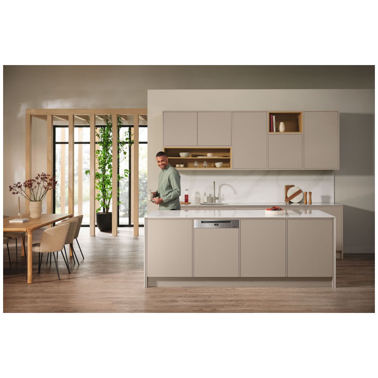 Zmywarka Miele G 5811 SCi Active Plus o kodzie 12870330 to przykład doskonałej integracji z nowoczesną przestrzenią kuchenną. Jako urządzenie zintegrowane o szerokości 60 cm z widocznym panelem w kolorze stal szlachetna/CleanSteel harmonijnie dopasowuje się do zabudowy. Jej kompaktowe wymiary: szerokość urządzenia 598 mm wysokość urządzenia 805 mm i głębokość urządzenia 570 mm zapewniają precyzyjne wkomponowanie w standardowe wnęki meblowe oferując jednocześnie pełen komfort obsługi poprzez estetyczny panel.