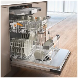 Zmywarka Miele G 7651 SCVi AutoDos ObsidianBlack o kodzie modelu 12906880 to w pełni zintegrowane urządzenie zaprojektowane do harmonijnej integracji z zabudową kuchenną. Przeznaczona dla standardowej zmywarki o szerokości 60 cm z szerokością urządzenia 598 mm wysokością urządzenia 805 mm i głębokością urządzenia 550 mm dyskretnie wtapia się w przestrzeń. Ukryty panel dotykowy w kolorze ObsidianBlack z 1-wierszowym białym wyświetlaczem tekstowym podkreśla minimalistyczny design.
