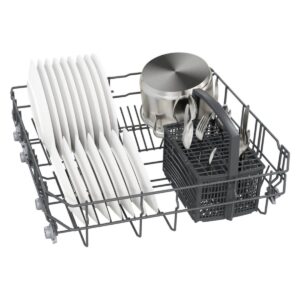 | System koszy | System koszy vario; regulacja wysokości górnego kosza; płynny wysuw dolnego kosza; RackStopper; 2 składane stojaki (dół); dodatkowa półka na sztućce (góra); koszyk na sztućce (dół); 2 półki na filiżanki (góra) |