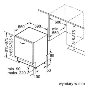 | Wymagana przestrzeń instalacyjna (WxSxG) | 815–875 × 600 × 550 mm |