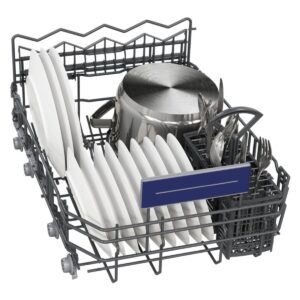 | System koszy | Kosze varioFlex, rackMatic (3 poziomy), płynny wysuw dolnego kosza, kolorowe wykończenie antypoślizgowe (góra), RackStopper, 2 składane stojaki (góra), 2 składane stojaki (dół), dodatkowa półka na sztućce (góra), koszyk na sztućce (dół), 2 półki na filiżanki (góra), półka na filiżanki (dół), uchwyty na kieliszki (dół) |