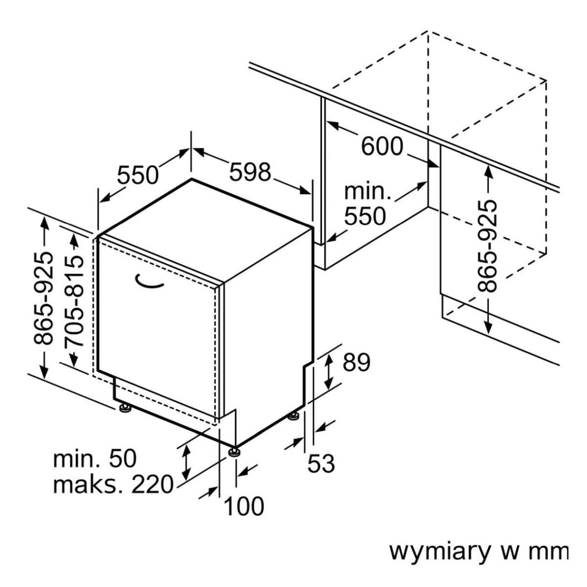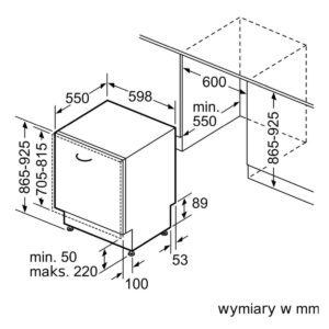 | Wymagana przestrzeń instalacyjna (WxSxG) | 865–925 × 600 × 550 mm |