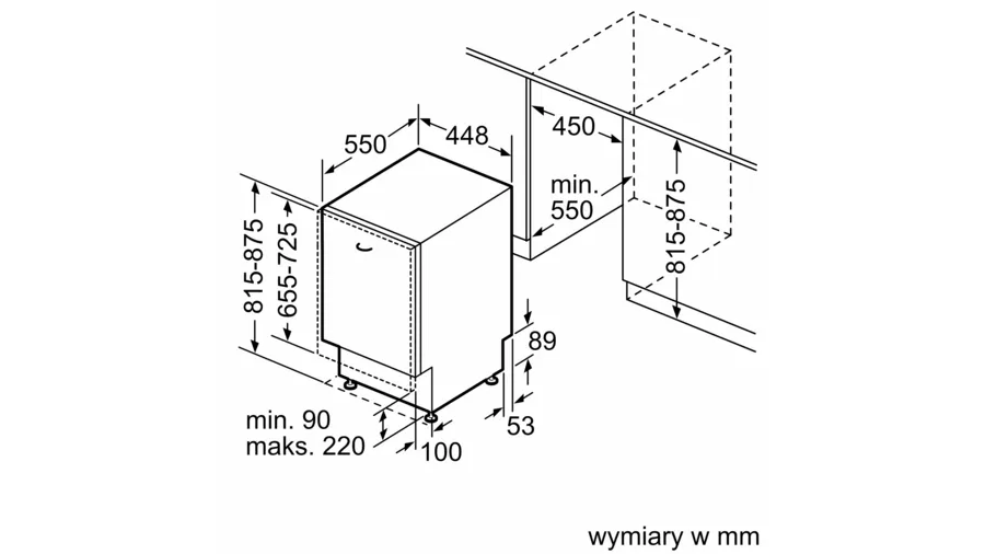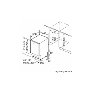 • Wymagana przestrzeń instalacyjna (WxSxG): 815-875 x 450 x 550 mm