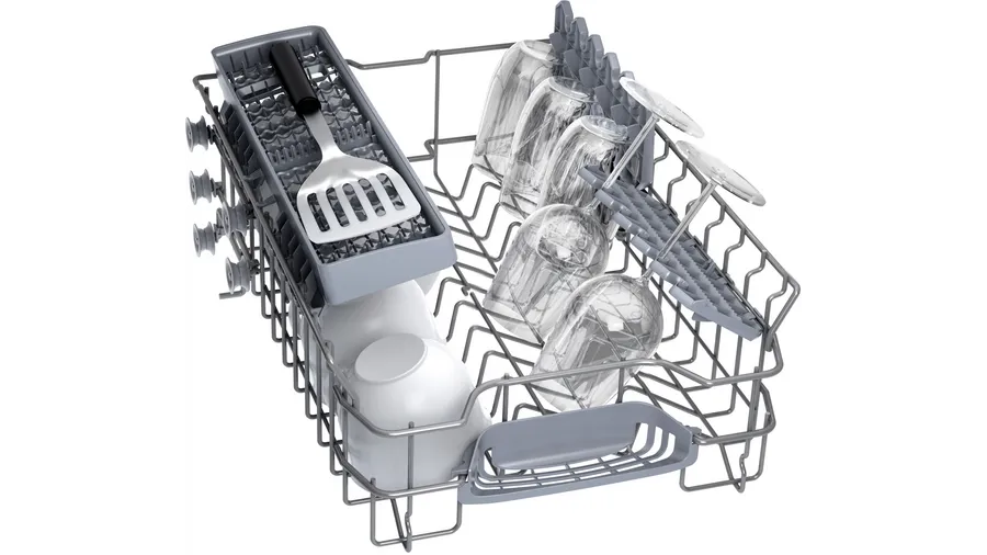 Zmywarka SPV2IKX10E posiada również dwa ramiona zraszające DuoPower, które skutecznie rozprowadzają wodę, zapewniając optymalne rezultaty zmywania. Dzięki temu naczynia są dokładnie czyste, bez resztek jedzenia czy osadu.