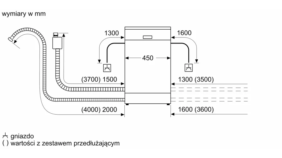 • Długość węża odprowadzającego (cm): 205 cm