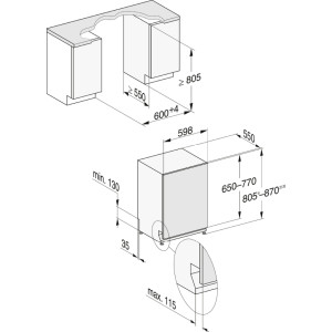 | Głębokość urządzenia przy otwartych drzwiczkach w cm |